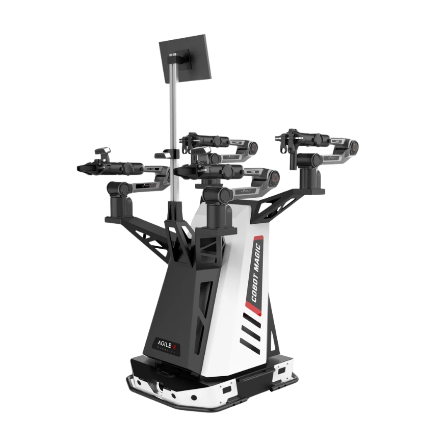 Su hardware se basa en 4 brazos robóticos, equipados con 2 cámaras en las muñecas y 1 cámara superior, y una base móvil del robot de movimiento diferencial Tracer de AgileX Robotics.