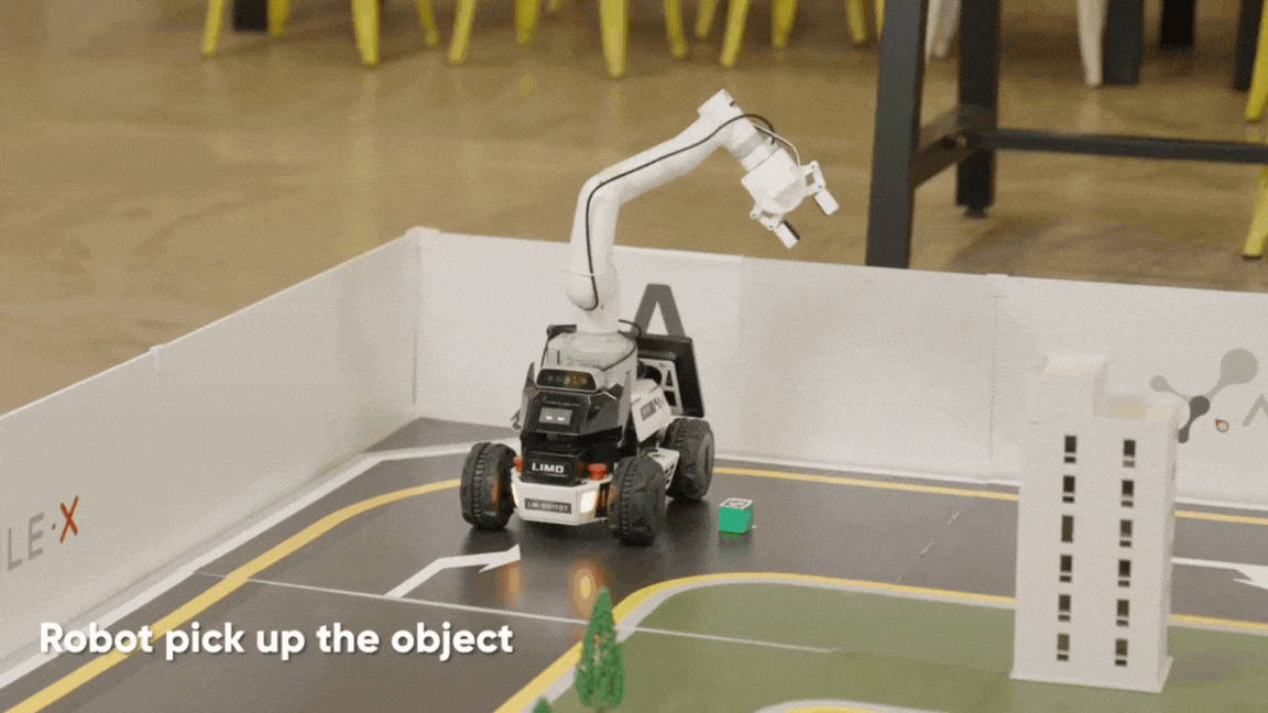 Agarre Móvil (Mobile Grasping) El LIMO Cobot cuenta con un brazo robótico de 6 Grados de Libertad (DoF) que soporta varios efectores finales, permitiendo un agarre móvil preciso para cumplir con diversos requisitos de tareas.
